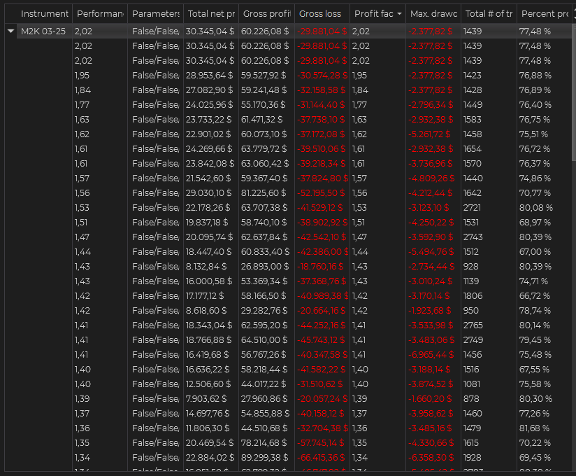 I have been running some optimizations on M2K to find a template with less drawdown than i need on my current MNQ template, these are the results i found and the template i chosen to go with.