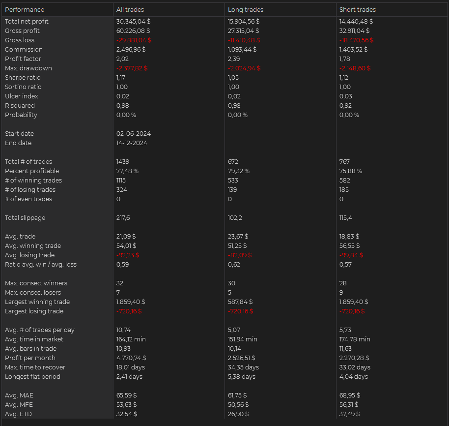 I will be running some further optimizations as this currently have been set to stop trading when 500 or more have been made, will try to see if it would benefit to have it set a bit bigger.