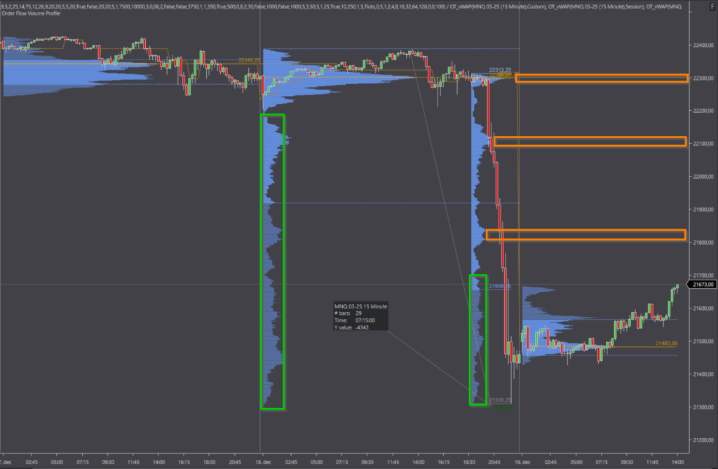 When looking at the daily profile we had very litle volume while going down, even when checking the profile over the drop there were not much resistance and no spikes. if i should find a volume cluster i wanted to sell it would be the 800 area or 100 area. So for me there were clear sky to go long.